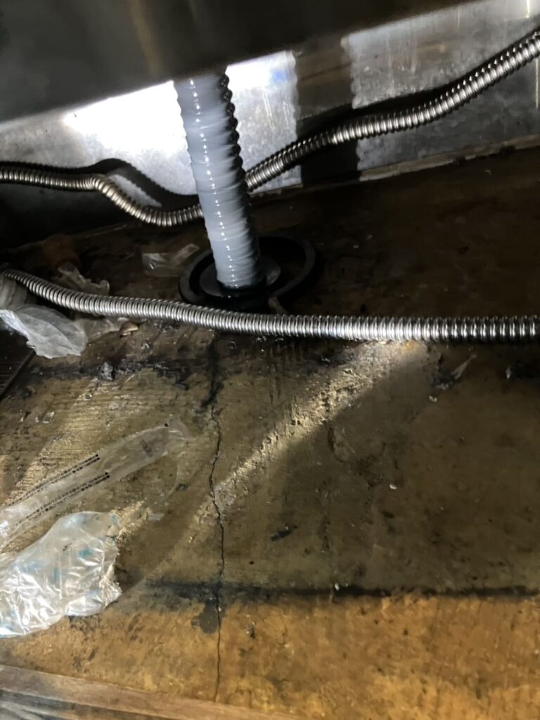 今回は、厨房シンク下の蛇腹ホースの劣化の件で現場に訪問させていただきました。
