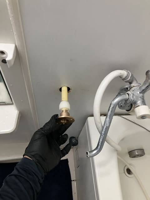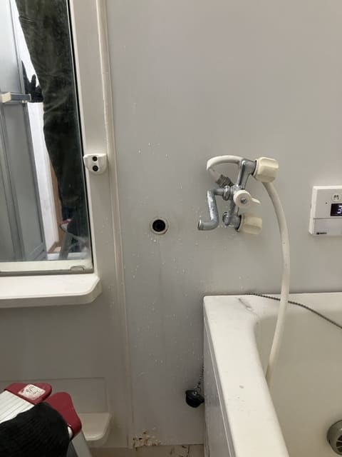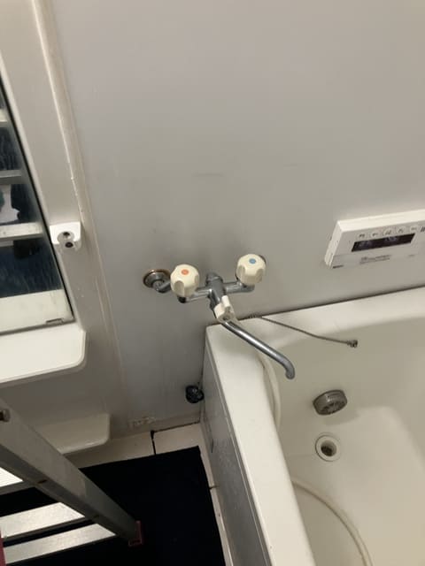 状況を確認させていただいたところ、ユニットバス裏の給湯管から水漏れが発生しておりました。