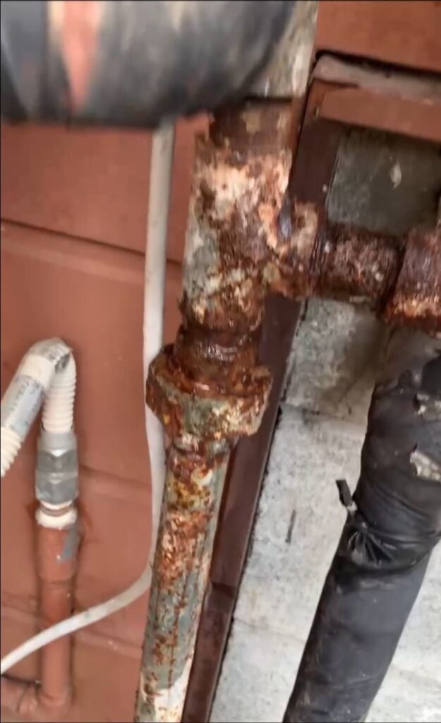 現場を拝見させていただいたところ、配管が劣化して錆びており水漏れが起きていました。