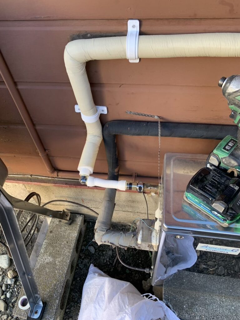 お客様へ状況と作業の内容の説明をしてご了承いただきましたので、給湯の一部引き直しをさせていただきました。